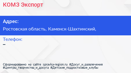 КОМЗ-Экспорт по адресу Ростовская область, Каменск-Шахтинский, в дальнейшем Организация, размещена в следующих категориях: