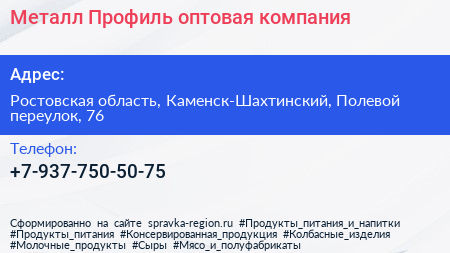 Металл Профиль, оптовая компания по адресу Ростовская область, Каменск-Шахтинский, Полевой переулок, 76 в дальнейшем Организация, размещена в следующих категориях: