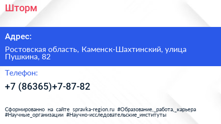 Шторм по адресу Ростовская область, Каменск-Шахтинский, улица Пушкина, 82 в дальнейшем Организация, размещена в следующих категориях: