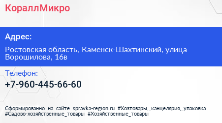 КораллМикро по адресу Ростовская область, Каменск-Шахтинский, улица Ворошилова, 16в в дальнейшем Организация, размещена в следующих категориях: