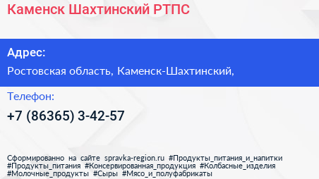 Каменск-Шахтинский РТПС по адресу Ростовская область, Каменск-Шахтинский, в дальнейшем Организация, размещена в следующих категориях: