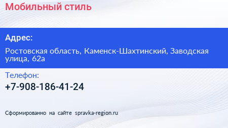 Мобильный стиль по адресу Ростовская область, Каменск-Шахтинский, Заводская улица, 62а в дальнейшем Организация, размещена в следующих категориях: