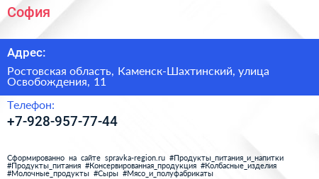 София по адресу Ростовская область, Каменск-Шахтинский, улица Освобождения, 11 в дальнейшем Организация, размещена в следующих категориях: