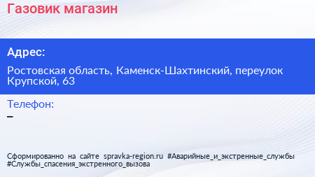 Газовик, магазин по адресу Ростовская область, Каменск-Шахтинский, переулок Крупской, 63 в дальнейшем Организация, размещена в следующих категориях: