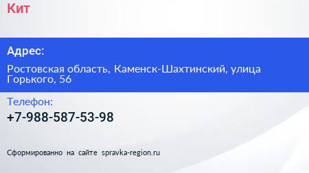 Кит по адресу Ростовская область, Каменск-Шахтинский, улица Горького, 56 в дальнейшем Организация, размещена в следующих категориях: