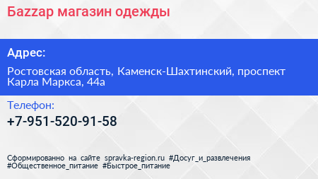 Бazzap, магазин одежды по адресу Ростовская область, Каменск-Шахтинский, проспект Карла Маркса, 44а в дальнейшем Организация, размещена в следующих категориях: