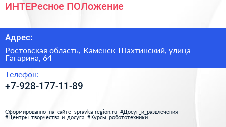 ИНТЕРесное ПОЛожение по адресу Ростовская область, Каменск-Шахтинский, улица Гагарина, 64 в дальнейшем Организация, размещена в следующих категориях: