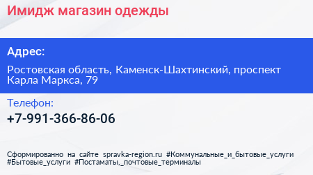 Имидж, магазин одежды по адресу Ростовская область, Каменск-Шахтинский, проспект Карла Маркса, 79 в дальнейшем Организация, размещена в следующих категориях: