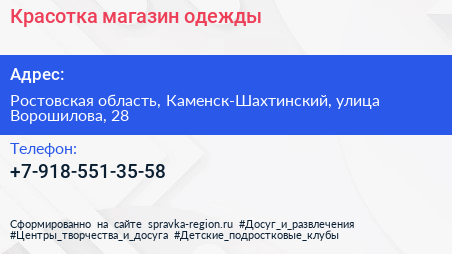Красотка, магазин одежды по адресу Ростовская область, Каменск-Шахтинский, улица Ворошилова, 28 в дальнейшем Организация, размещена в следующих категориях: