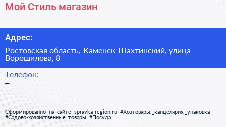 Мой Стиль, магазин по адресу Ростовская область, Каменск-Шахтинский, улица Ворошилова, 8 в дальнейшем Организация, размещена в следующих категориях: