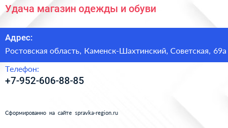 Удача, магазин одежды и обуви по адресу Ростовская область, Каменск-Шахтинский, Советская, 69а в дальнейшем Организация, размещена в следующих категориях:
