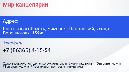 Мир канцелярии по адресу Ростовская область, Каменск-Шахтинский, улица Ворошилова, 159ж в дальнейшем Организация, размещена в следующих категориях:
