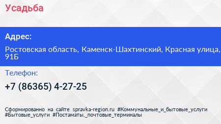 Усадьба по адресу Ростовская область, Каменск-Шахтинский, Красная улица, 91Б в дальнейшем Организация, размещена в следующих категориях:
