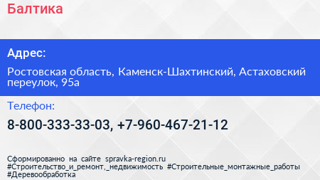 Балтика по адресу Ростовская область, Каменск-Шахтинский, Астаховский переулок, 95а в дальнейшем Организация, размещена в следующих категориях: