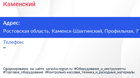 Каменский по адресу Ростовская область, Каменск-Шахтинский, Профильная, 7 в дальнейшем Организация, размещена в следующих категориях: