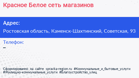 Красное & Белое, сеть магазинов по адресу Ростовская область, Каменск-Шахтинский, Советская, 93 в дальнейшем Организация, размещена в следующих категориях: