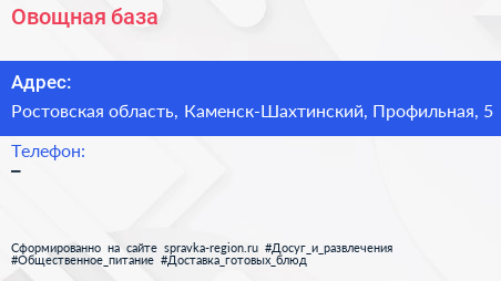 Овощная база по адресу Ростовская область, Каменск-Шахтинский, Профильная, 5 в дальнейшем Организация, размещена в следующих категориях: