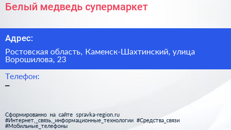 Белый медведь, супермаркет по адресу Ростовская область, Каменск-Шахтинский, улица Ворошилова, 23 в дальнейшем Организация, размещена в следующих категориях: