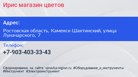 Ирис, магазин цветов по адресу Ростовская область, Каменск-Шахтинский, улица Луначарского, 7 в дальнейшем Организация, размещена в следующих категориях: