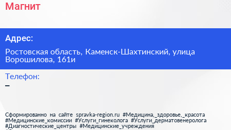 Магнит по адресу Ростовская область, Каменск-Шахтинский, улица Ворошилова, 161и в дальнейшем Организация, размещена в следующих категориях: