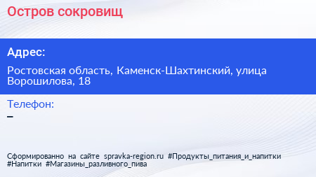 Остров сокровищ по адресу Ростовская область, Каменск-Шахтинский, улица Ворошилова, 18 в дальнейшем Организация, размещена в следующих категориях: