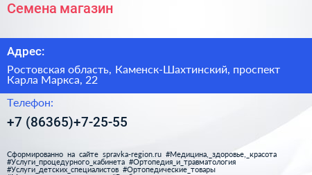 Семена, магазин по адресу Ростовская область, Каменск-Шахтинский, проспект Карла Маркса, 22 в дальнейшем Организация, размещена в следующих категориях: