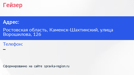 Гейзер по адресу Ростовская область, Каменск-Шахтинский, улица Ворошилова, 126 в дальнейшем Организация, размещена в следующих категориях: