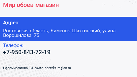 Мир обоев, магазин по адресу Ростовская область, Каменск-Шахтинский, улица Ворошилова, 75 в дальнейшем Организация, размещена в следующих категориях: