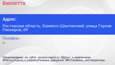 Виолетта по адресу Ростовская область, Каменск-Шахтинский, улица Героев Пионеров, 69 в дальнейшем Организация, размещена в следующих категориях: