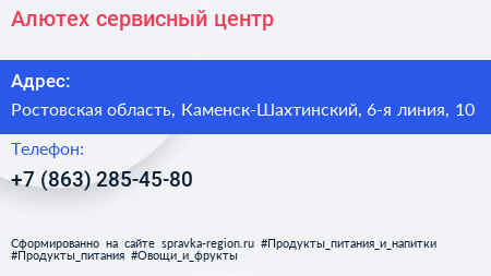 Алютех, сервисный центр по адресу Ростовская область, Каменск-Шахтинский, 6-я линия, 10 в дальнейшем Организация, размещена в следующих категориях: