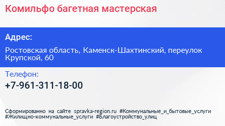 Комильфо, багетная мастерская по адресу Ростовская область, Каменск-Шахтинский, переулок Крупской, 60 в дальнейшем Организация, размещена в следующих категориях: