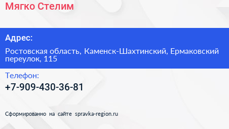 Мягко Стелим по адресу Ростовская область, Каменск-Шахтинский, Ермаковский переулок, 115 в дальнейшем Организация, размещена в следующих категориях: