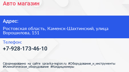 Авто магазин по адресу Ростовская область, Каменск-Шахтинский, улица Ворошилова, 151 в дальнейшем Организация, размещена в следующих категориях: