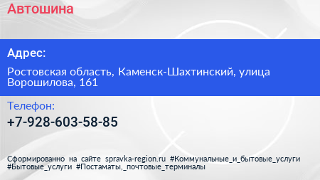 Автошина по адресу Ростовская область, Каменск-Шахтинский, улица Ворошилова, 161 в дальнейшем Организация, размещена в следующих категориях: