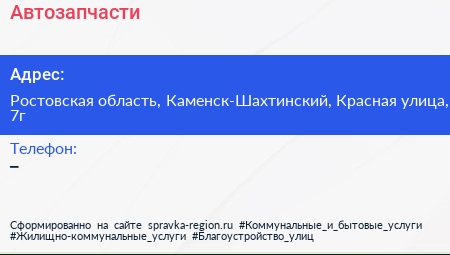 Автозапчасти по адресу Ростовская область, Каменск-Шахтинский, Красная улица, 7г в дальнейшем Организация, размещена в следующих категориях: