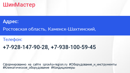 ШинМастер по адресу Ростовская область, Каменск-Шахтинский, в дальнейшем Организация, размещена в следующих категориях: