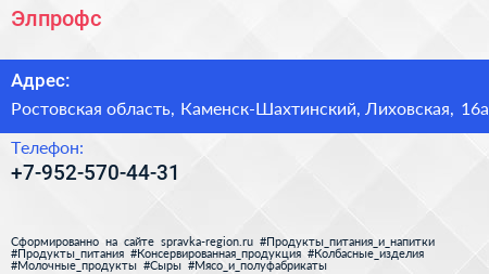 Элпрофс по адресу Ростовская область, Каменск-Шахтинский, Лиховская, 16а в дальнейшем Организация, размещена в следующих категориях: