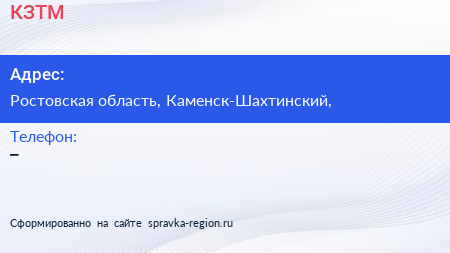 КЗТМ по адресу Ростовская область, Каменск-Шахтинский, в дальнейшем Организация, размещена в следующих категориях: