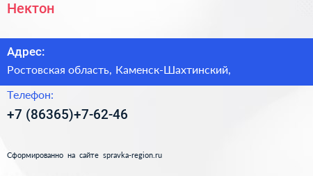 Нектон по адресу Ростовская область, Каменск-Шахтинский, в дальнейшем Организация, размещена в следующих категориях: