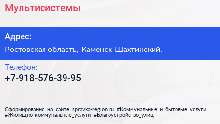Мультисистемы по адресу Ростовская область, Каменск-Шахтинский, в дальнейшем Организация, размещена в следующих категориях:
