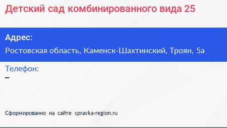 Детский сад комбинированного вида №25 по адресу Ростовская область, Каменск-Шахтинский, Троян, 5а в дальнейшем Организация, размещена в следующих категориях: