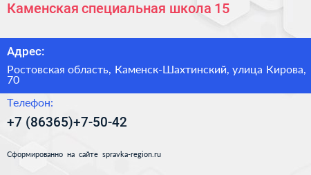 Каменская специальная школа №15 по адресу Ростовская область, Каменск-Шахтинский, улица Кирова, 70 в дальнейшем Организация, размещена в следующих категориях: