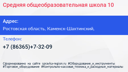 Средняя общеобразовательная школа №10 по адресу Ростовская область, Каменск-Шахтинский, в дальнейшем Организация, размещена в следующих категориях: