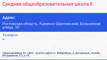 Средняя общеобразовательная школа №8 по адресу Ростовская область, Каменск-Шахтинский, Больничная улица, 10 в дальнейшем Организация, размещена в следующих категориях: