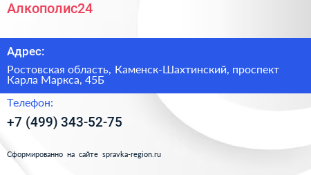 Алкополис24 по адресу Ростовская область, Каменск-Шахтинский, проспект Карла Маркса, 45Б в дальнейшем Организация, размещена в следующих категориях: