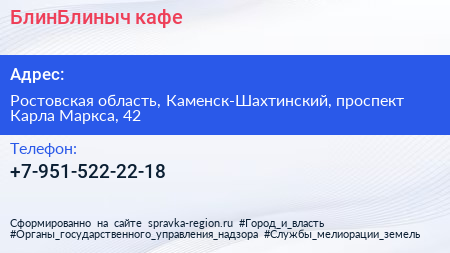 БлинБлиныч, кафе по адресу Ростовская область, Каменск-Шахтинский, проспект Карла Маркса, 42 в дальнейшем Организация, размещена в следующих категориях: