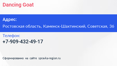 Dancing Goat по адресу Ростовская область, Каменск-Шахтинский, Советская, 36 в дальнейшем Организация, размещена в следующих категориях: