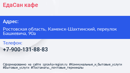 ЕдаСан, кафе по адресу Ростовская область, Каменск-Шахтинский, переулок Башкевича, 90а в дальнейшем Организация, размещена в следующих категориях: