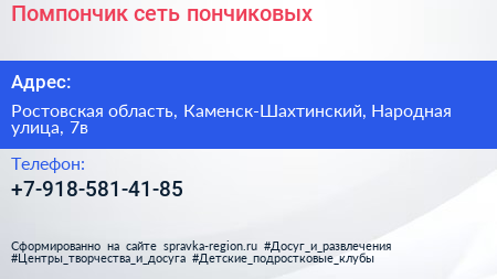 Помпончик, сеть пончиковых по адресу Ростовская область, Каменск-Шахтинский, Народная улица, 7в в дальнейшем Организация, размещена в следующих категориях: