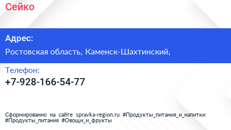Сейко по адресу Ростовская область, Каменск-Шахтинский, в дальнейшем Организация, размещена в следующих категориях: